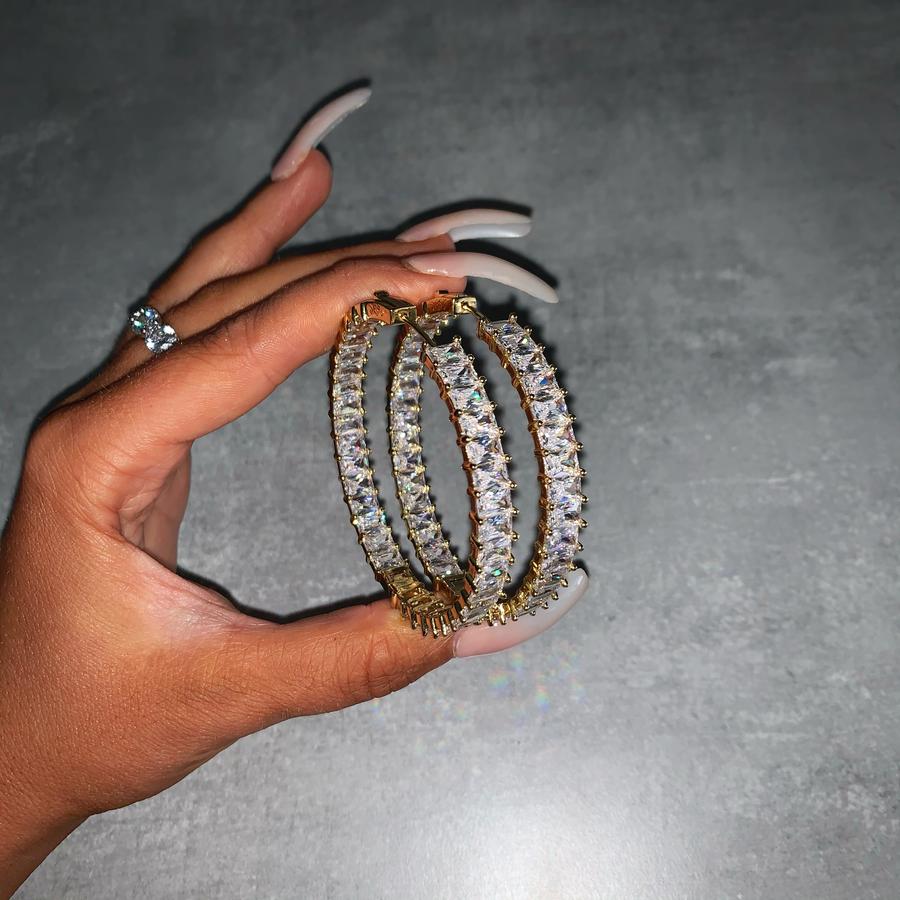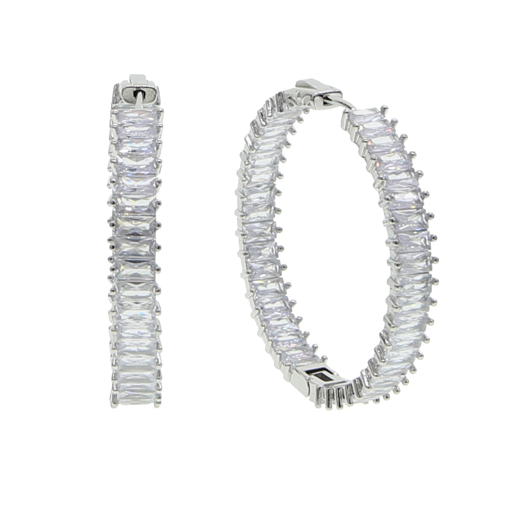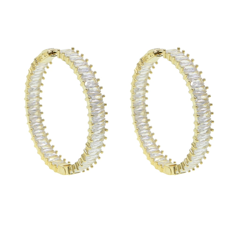 Full Band Paved Rectangle Cubic Zirconia 50MM Big Iced Out Bling Women CZ Hoop Earring